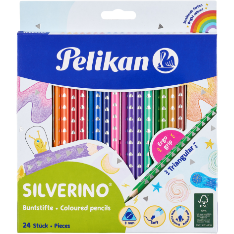 KREDKI TRÓJKĄTNE PELIKAN SILVERINO 24 KOLORY