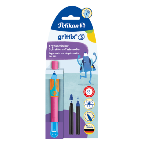 PIÓRO KULKOWE PELIKAN GRIFFIX DLA PRAWORĘCZNYCH NEON BLACK BLISTER + 2 WKŁADY