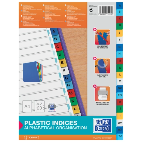 PRZEKŁADKI OXFORD A4 PP ALFABETYCZNE A-Z KOLOROWE