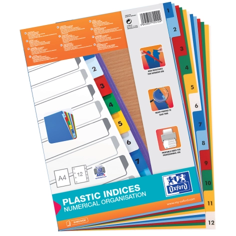 PRZEKŁADKI OXFORD A4 PP NUMERYCZNE 1-12 KOLOROWE
