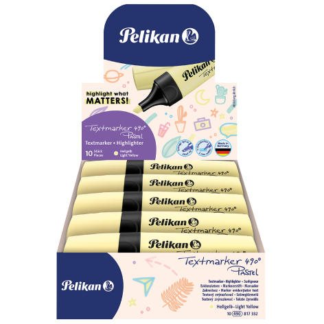 ZAKREŚLACZ PELIKAN TEXTMARKER 490 PASTEL ŻÓŁTY DISPLAY 10 SZT.