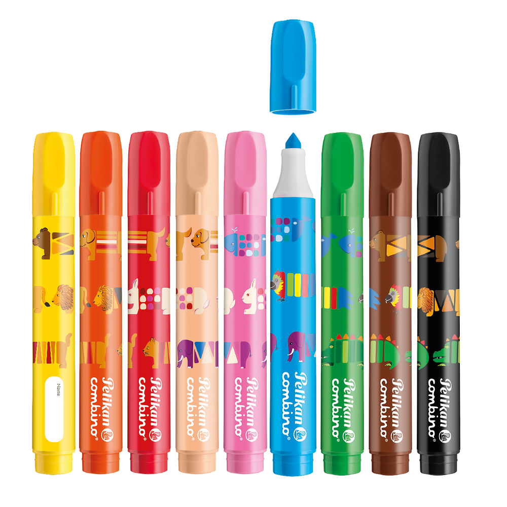 Flamastry Pelikan Colorella Super Combino C411 to doskonałe narzędzie do rozwijania kreatywności i wyobraźni. Zestaw składa się z 9 kolorowych pisaków, które zachwycają intensywnością barw i szerokimi możliwościami zastosowań. Flamastry te są stworzone z myślą o dzieciach, ale równie dobrze sprawdzą się w rękach dorosłych – od rysowania po precyzyjne zaznaczanie i kolorowanie. Innowacyjna konstrukcja umożliwia łączenie ich w różne kształty i formy. Specjalne końcówki pozwalają na kreatywne zabawy, takie jak tworzenie przestrzennych figur, co czyni je nie tylko narzędziem do rysowania, ale także inspirującą zabawką rozwijającą zdolności manualne i logiczne myślenie. Dzieci mogą budować wieże, zwierzęta czy inne wymyślone struktury, łącząc rysowanie z zabawą. Flamastry są wyposażone w wytrzymałe, stożkowe końcówki, które pozwalają na rysowanie zarówno cienkich, jak i grubszych linii. Dodatkowo zastosowano nietoksyczny, łatwo zmywalny tusz, co czyni je całkowicie bezpiecznymi dla dzieci. Tusz można łatwo usunąć z większości tkanin, co zapewnia spokój rodzicom podczas zabaw artystycznych. Dzięki trwałym materiałom i precyzyjnemu wykonaniu, flamastry są niezastąpionym dodatkiem w szkole, w domu czy na zajęciach plastycznych. Zestaw ten jest idealnym wyborem dla wszystkich, którzy szukają wysokiej jakości flamastrów z dodatkową funkcją zabawy, gwarantując radość na długie godziny.