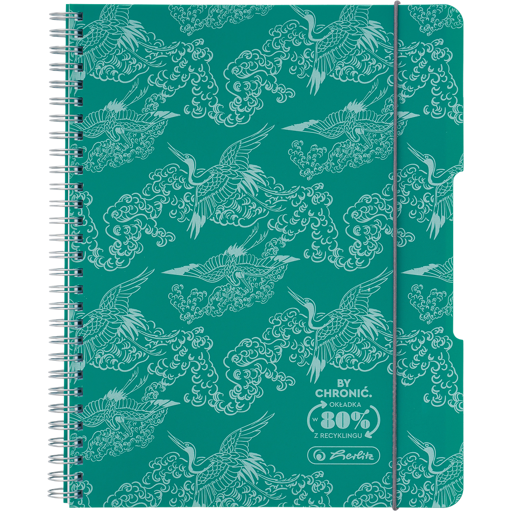 Kołozeszyty Herlitz Eco PP to idealne połączenie nowoczesnej formy, stylowego wyglądu i troski o środowisko. Ich okładki wykonane z trwałęgo polipropylenu, pokryte delikatnymi, botanicznymi nadrukami, wyróżniają się subtelnym, naturalnym charakterem i jednocześnie oferują trwałą, wodoodporną ochronę. Co ważne, 30% użytego materiału pochodzi z recyklingu odpadów postprodukcyjnych, które powstały przy produkcji miękkiego plastiku, a całość w 100% nadaje się do ponownego przetworzenia. Zeszyt wyposażony jest w czarną, podwójną spiralę, która umożliwia otwarcie na płasko i wygodne pisanie na każdej stronie, a czarna gumka zamykająca chroni notatki i zapobiega ich zaginaniu. To idealne rozwiązanie dla uczniów i studentów, którzy chcą sięgać po produkty świadome, trwałe i estetyczne. Dostępne w czterech pastelowych kolorach z nadrukiem: błękitnym, miętowym, różowym i turkusowym.
