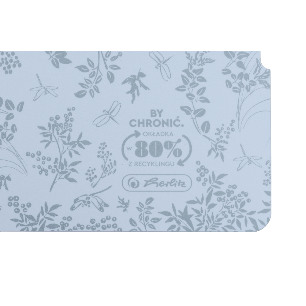 • Błękitny kolor okładki z botanicznym nadrukiem