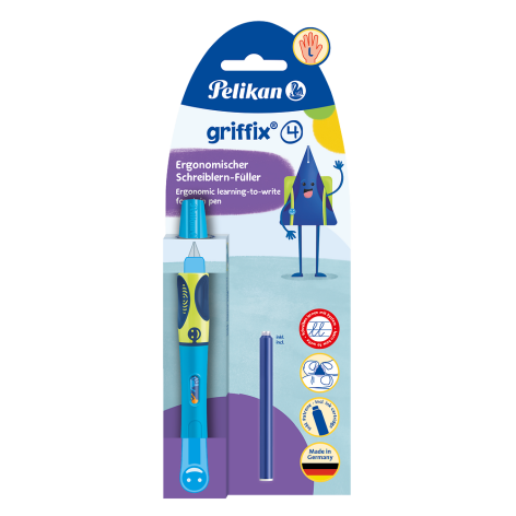 Naboje do pióra kulkowego Pelikan Griffix zostały zaprojektowane specjalnie z myślą o dzieciach uczących się pisać. Pasują wyłącznie do piór kulkowych z tej serii i oferują wyjątkowo płynne, gładkie pisanie dzięki końcówce z włókna – bez tradycyjnej kulki. Niebieski tusz jest wymazywalny korektorami do piór wiecznych, co czyni te wkłady idealnym rozwiązaniem do codziennego pisania i nauki – błędy można szybko i łatwo poprawić. Każdy nabój posiada niebieską nasadkę zabezpieczającą, która chroni końcówkę przed wysychaniem i ułatwia przechowywanie. To wygodne i bezpieczne rozwiązanie dla dzieci, które dopiero rozwijają swoje umiejętności piśmiennicze.