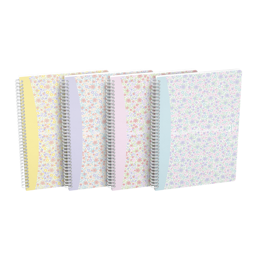 - Podwójna biała spirala zapewnia, że notatnik leży perfekcyjnie płasko po otwarciu. Kartonowa okładka z laminatem Soft Touch w różnych kwiecistych wzorach