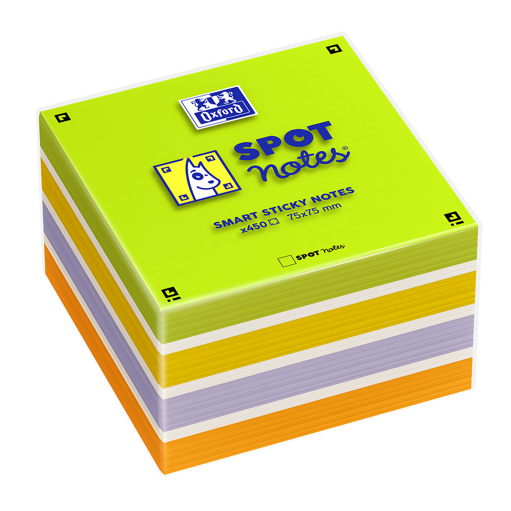 Kostka Spot Notes idealnie sprawdzi się do zapisywania krótkich notatek lub przypomnień. Specjalne tagi w narożnikach umożliwiają zeskanowanie notatek za pomocą smartfona i darmowej aplikacji Scribzee. Samoprzylepne karteczki można przykleić do każdej powierzchni i mieć je zawsze w zasięgu wzroku.