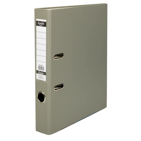 Klasyczny segregator dźwigniowy o grzbiecie szerokości 5 cm z mocnym mechanizmem dociskającym. Na grzbiecie znajduje się wymienna etykieta opisowa dla łatwiejszej identyfikacji zawartości. Z zewnątrz oklejony jest folią polipropylenową o płóciennej strukturze. Dolne krawędzie zostały wzmocnione metalową szyną.