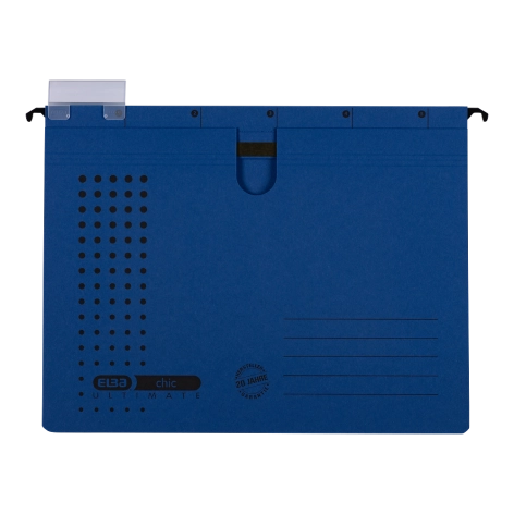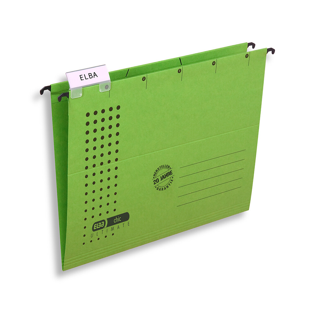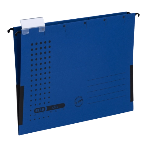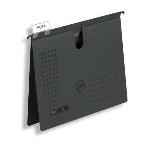 Teczki zawieszkowe w formacie A4, wykonane z mocnego kartonu. U góry znajduje się przesuwny szyldzik z wymienną etykietą opisową. Harmonijkowe, płócienne boki zapobiegają wysuwaniu się dokumentów. W środku dwie pary nacięć do pasków skoroszytowych. Każda teczka może pomieścić do 330 kartek.