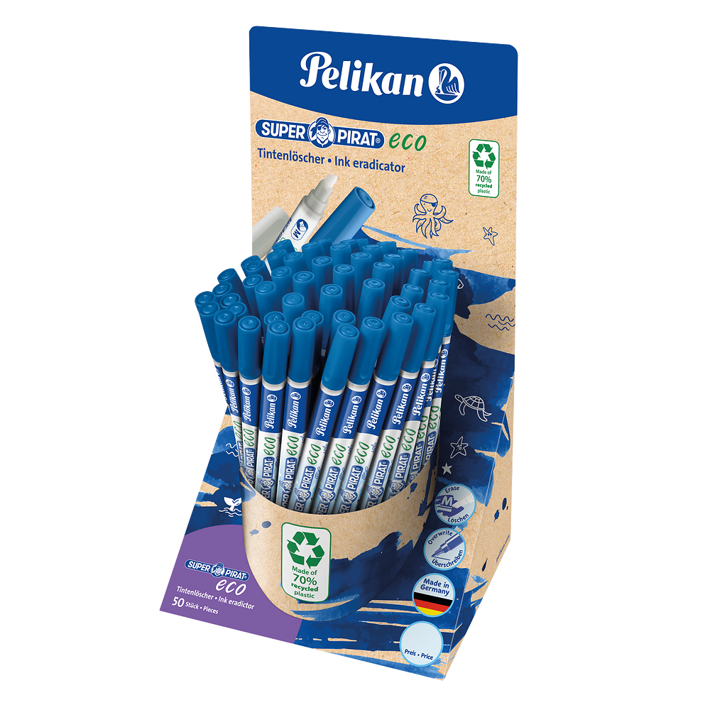 Korektor Super Pirat to praktyczne narzędzie do precyzyjnego usuwania błędów i ponownego pisania. Jedna końcówka skutecznie wymazuje niebieski atrament, a druga, z niebieskim tuszem, pozwala na natychmiastowe poprawki. Wykonany w 70% z plastiku z recyklingu, jest ekologicznym wyborem dla osób ceniących wygodę i dbałość o środowisko. Idealnie sprawdzi się w szkole, biurze i codziennym użytkowaniu.