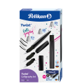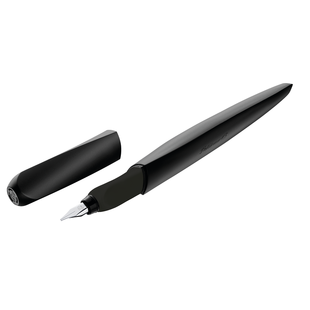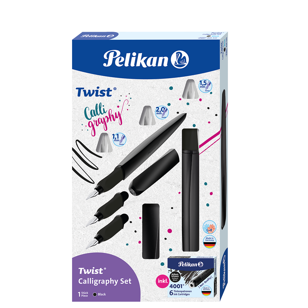 Zestaw do kaligrafii Pelikan Twist Black to propozycja dla tych, którzy cenią pełną kontrolę nad linią i możliwość eksperymentowania z różnymi stylami pisma. W jego skład wchodzi czarne pióro wieczne Pelikan Twist oraz trzy wymienne stalówki o szerokościach 1,1 mm, 1,5 mm i 2,0 mm – każda z nich pozwala uzyskać inny efekt kaligraficzny, od subtelnych liter po wyraziste, dekoracyjne akcenty. Zestaw uzupełnia opakowanie zawierające 6 czarnych naboi atramentowych, dzięki czemu jest w pełni gotowy do intensywnej pracy od razu po otwarciu. Skręcony korpus Twist zapewnia ergonomiczny, wygodny chwyt, a minimalistyczna, głęboka czerń podkreśla profesjonalny charakter zestawu.