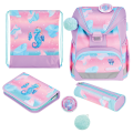 - W zestawie tornister, piórnik rozkładany, piórnik tuba i worek na buty w tym samym wzorze