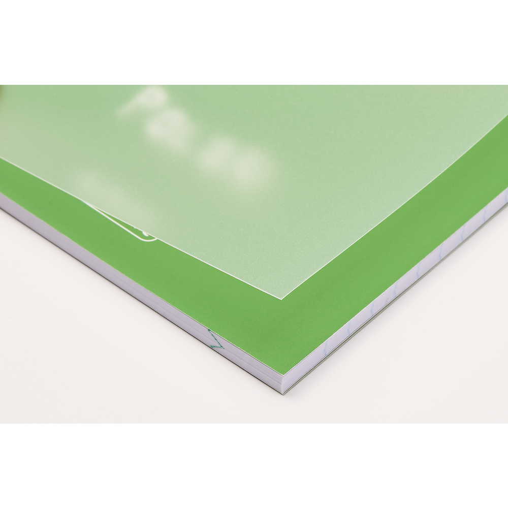 • Niebieska liniatura z zielonym marginesem – ekologiczna estetyka w środku