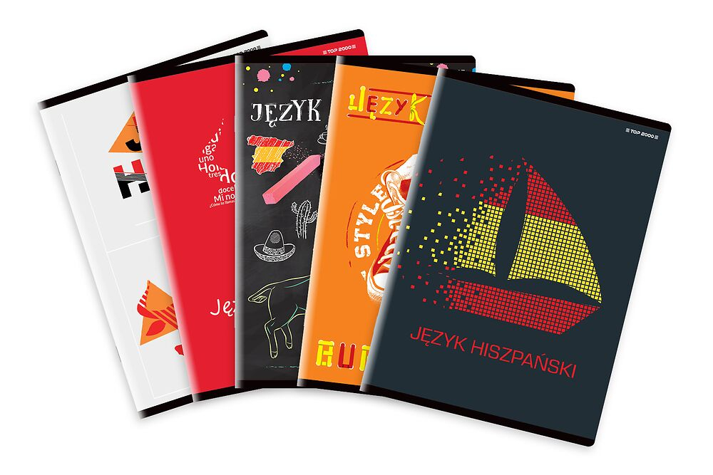 Zeszyty z kolekcji przedmiotowej serii Standard. Dedykowane do języka hiszpańskiego. Miękkie, laminowane, kartonowe okładki z pięcioma różnyim grafikami do wyboru.