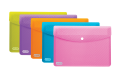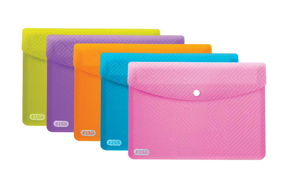 Teczki kopertowe wykonane z przezroczystego polipropylenu w pięciu różnych, energetyzujących kolorach. Zamknięcie na zatrzask chroni dokumenty przed wypadaniem. Zaokrąglone rogi zapewniają bezpieczne użytkowanie. Format A5 doskonale sprawdzi się w przechowywaniu małych dokumentów.